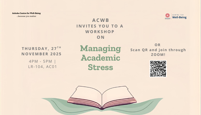 Ashoka's residential setting offers a unique opportunity for students to intimately be part of a strong, opinionated and active community. In this context, students may become vulnerable to stress and anxiety that comes with achieving perfect grades and coping with the social demands of campus life.